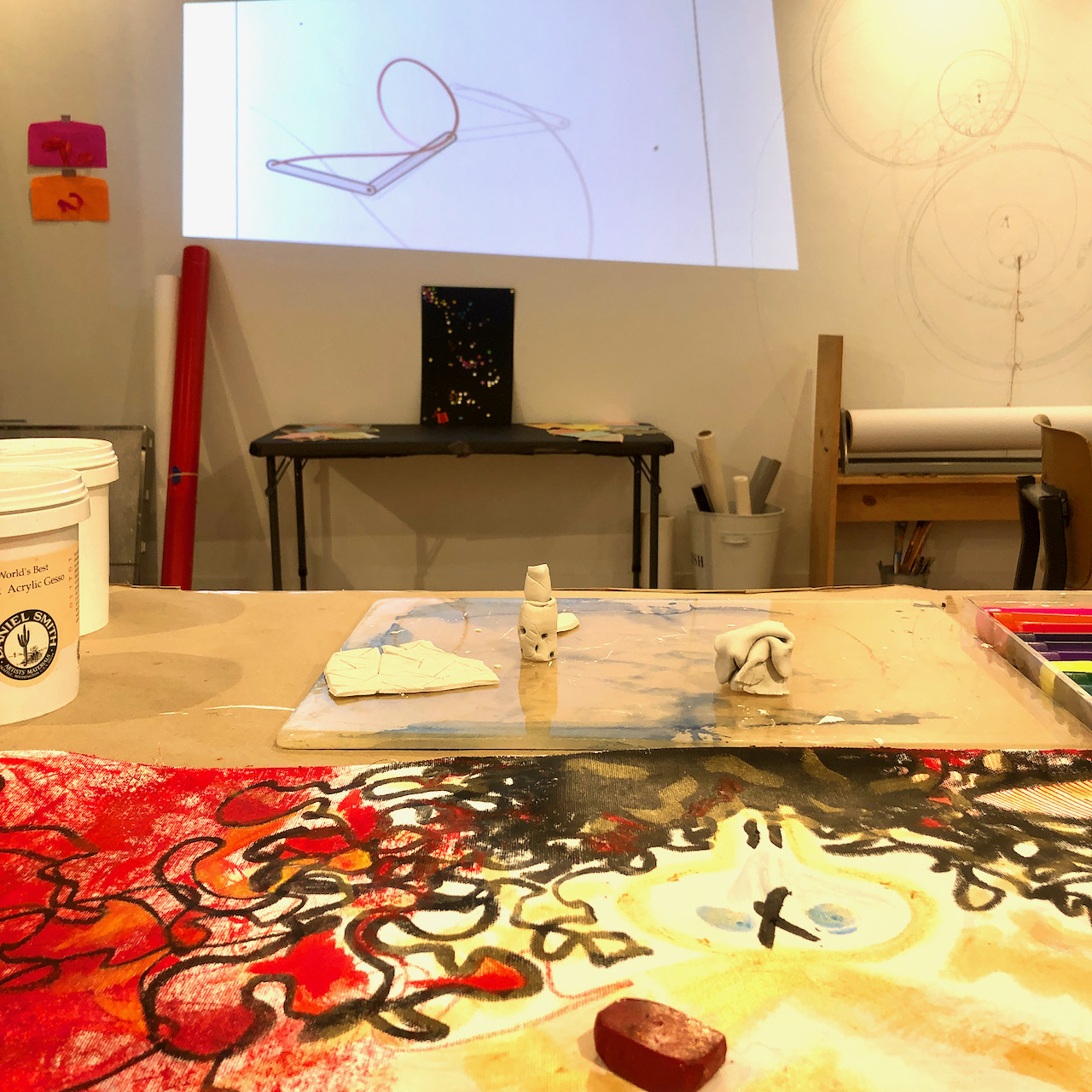 When the Art Center relocated to this permanent home in downtown Basalt, the exhibition space and educational spaces were separated with the active creative space no longer visible to passersby. In 2020, I proposed an exhibition for the gallery that aimed to interrupt the perception of the art center as primarily a commercial space. Each installment of ‘art in process’ has been unique to its time and space, being informed by whomever has walked through the door.