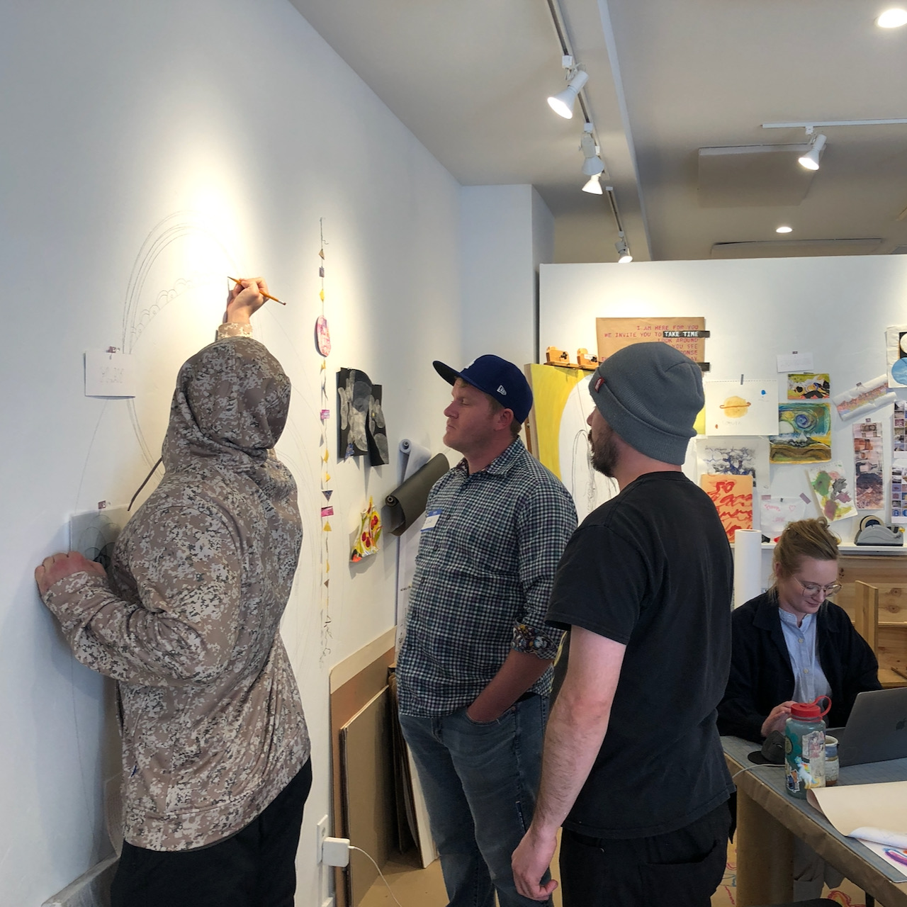 Public participation has varied from simply witnessing the studio, to actively engaging in a creative process. These interactions have been unpredictable, challenging both myself as a hosting artist, and the visitors invited to earnestly engage in art-making as process—with the focus not on a final product. These installations all aimed to deepen the level of engagement and connection within our community.